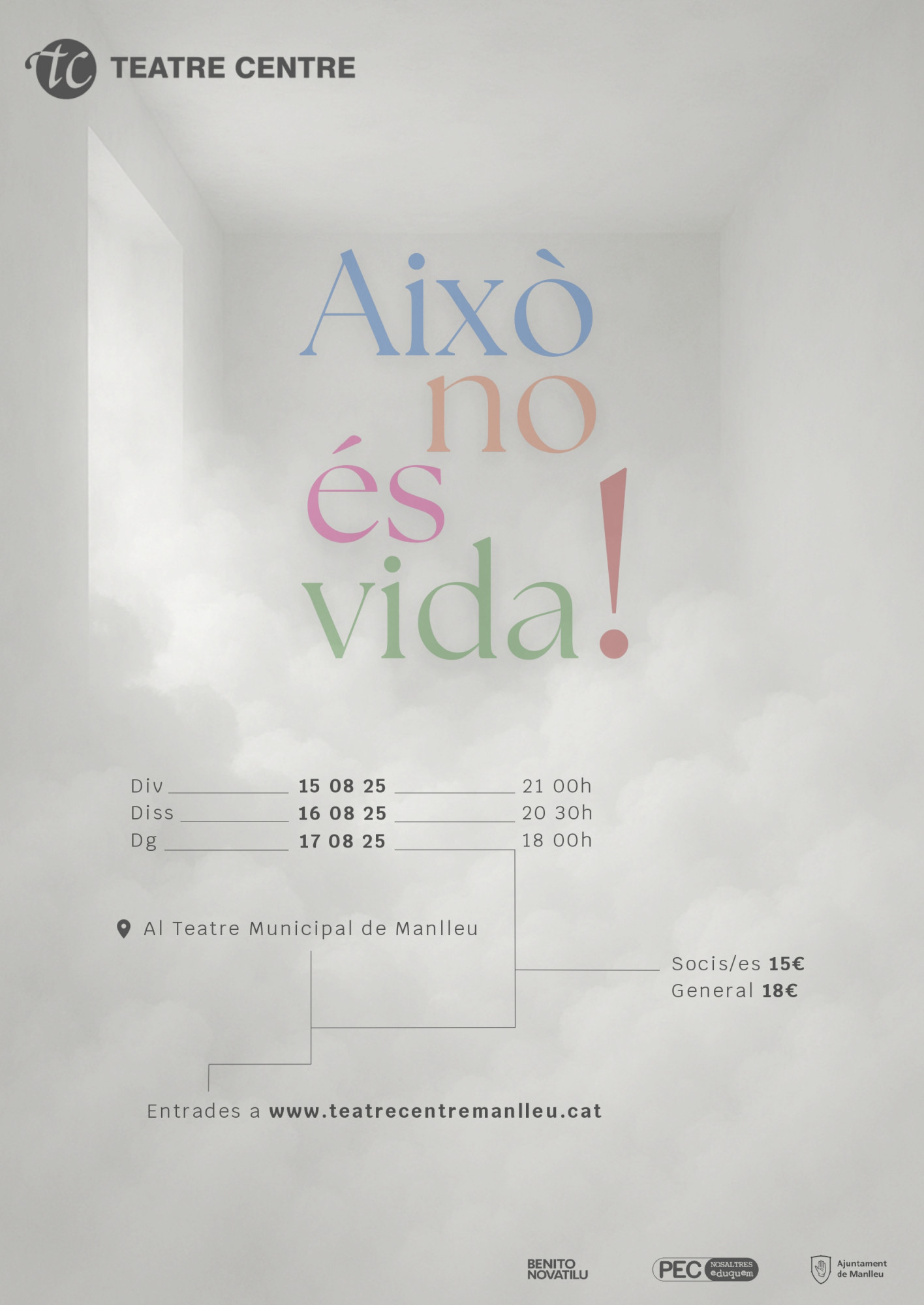 Informació i venda d’entrades a: www.teatrecentre.cat i una hora abans a la taquilla del teatre