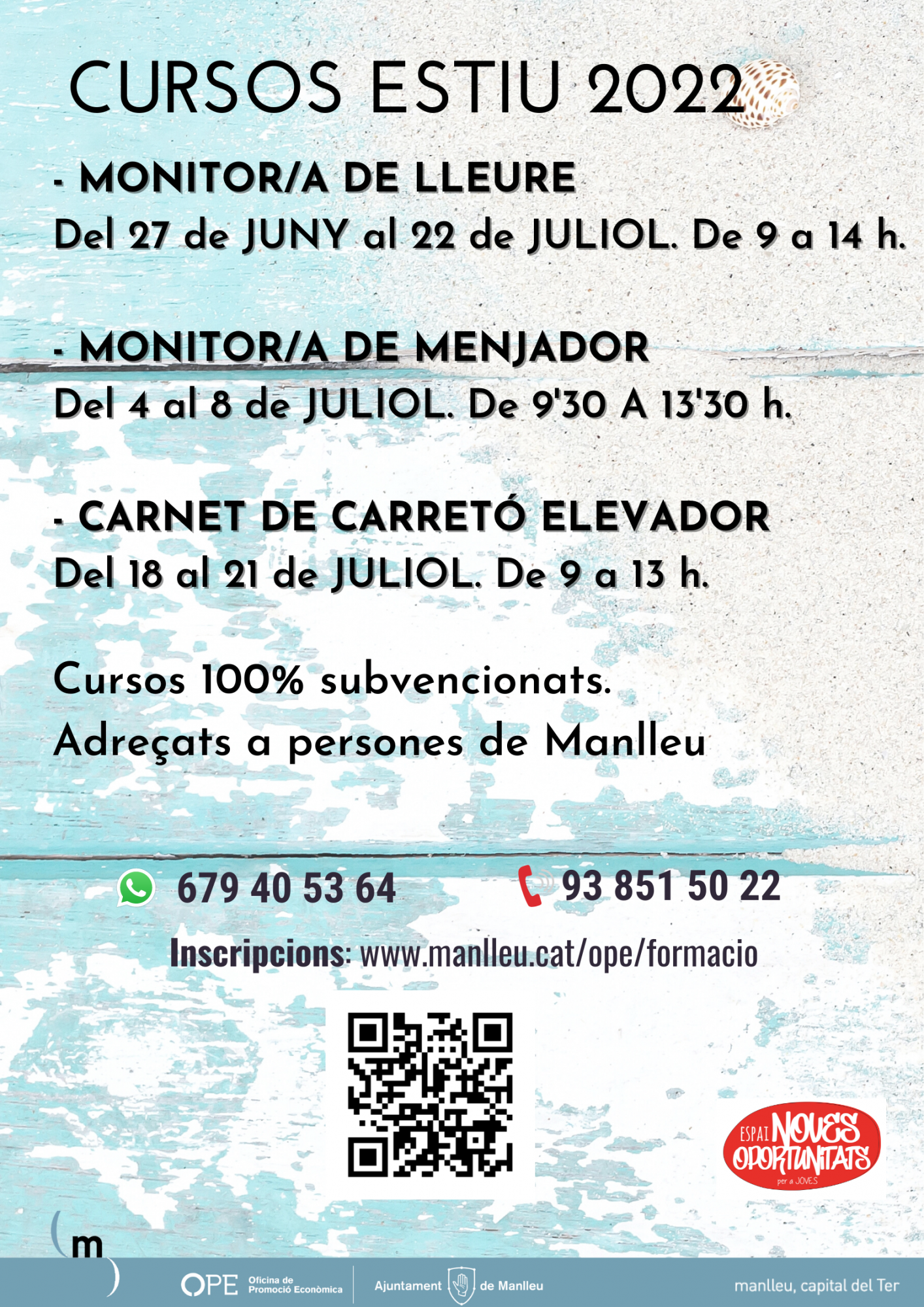 Aquest estiu, a l’Espai de Noves Oportunitat de Manlleu (ENOM) s’organitzen diversos cursos subvencionats adreçats preferentment a la població jove de Manlleu, però oberts a tothom que hi estigui interessat/da.