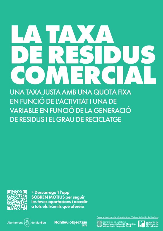 La taxa de residus comercial de Manlleu es compon d’una quota fixa (depèn de les característiques de l’activitat) i d'una part variable. La part fixa es pagarà l’1 de juliol d’enguany. La part variable, que es pagarà durant el primer trimestre de 2025, s'estableix en funció del volum i nombre de cubells de resta que tingui el negoci i de les aportacions d’orgànica i multiproducte que faci.