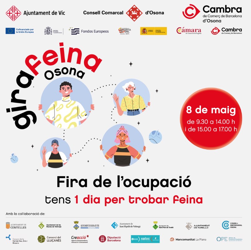 Torna la Girafeina a Osona, una oportunitat perquè joves de la comarca puguin conèixer empreses del territori. Les persones participants podran conèixer què busquen en una entrevista de feina, participar en dinàmiques per millorar la seva ocupabilitat, fer-se conèixer i presentar el seu currículum.