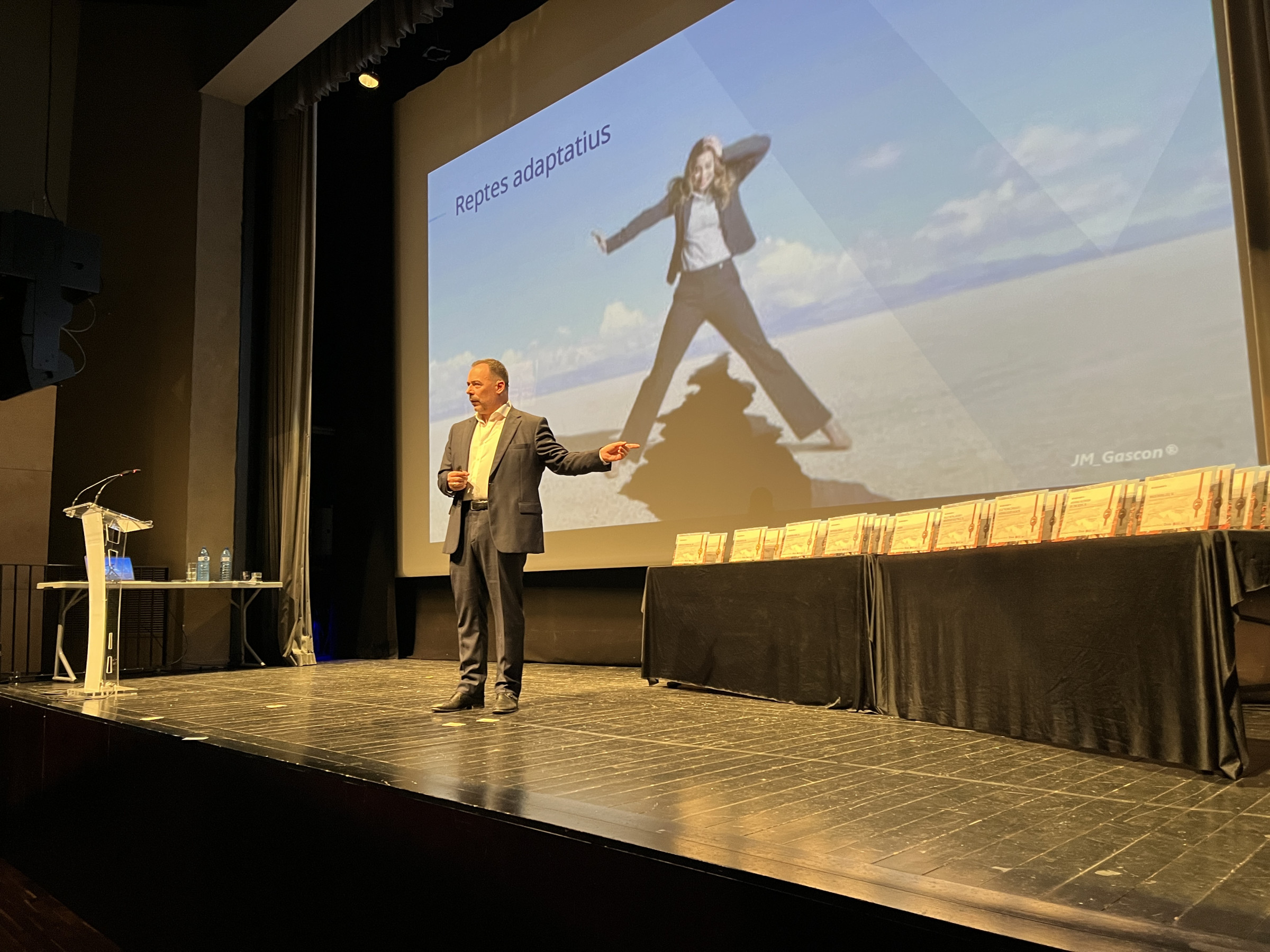 A continuació, es va donar pas a la conferència Transforma la teva organització amb un lideratge més humà. Josep Maria Gascon va advocar per un nou lideratge, on els responsables de les organitzacions han d’estar disposats a adaptar-se, aprendre i desenvolupar enfocaments flexibles que tractin les necessitats canviants de l’entorn en què operen.
