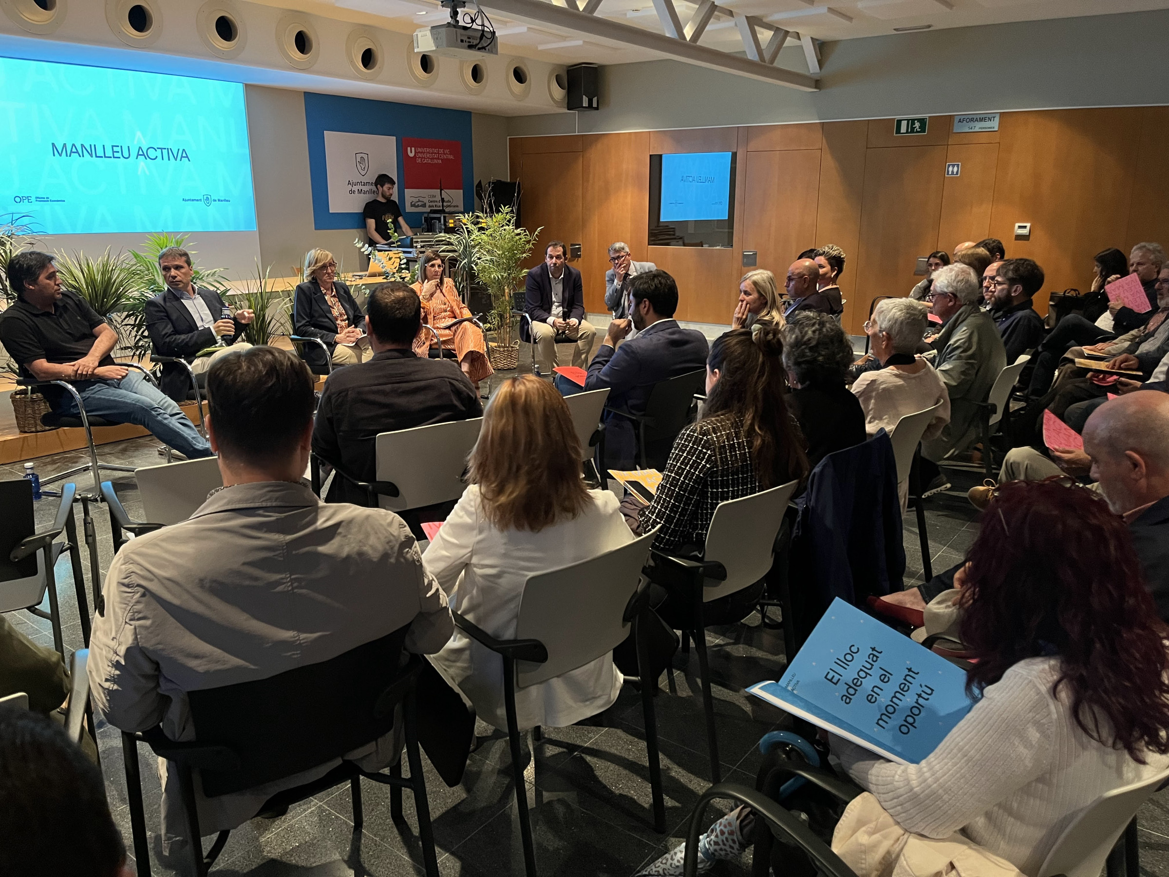 Després de la presentació d’objectius i línies de treball de Manlleu Activa, es va obrir una conversa amb responsables d’empreses que representen els quatre grans eixos que defineixen Manlleu Activa: Marc Pérez, Export Manager de CAPE; Montse Solé, directora d'atenció intermèdia i dependència del Consorci Hospitalari de Vic; Albina Vilalta, presidenta de l’associació de comerciants Mab Manlleu i Sergio Ponsá, director del Centre Tecnològic BETA.
