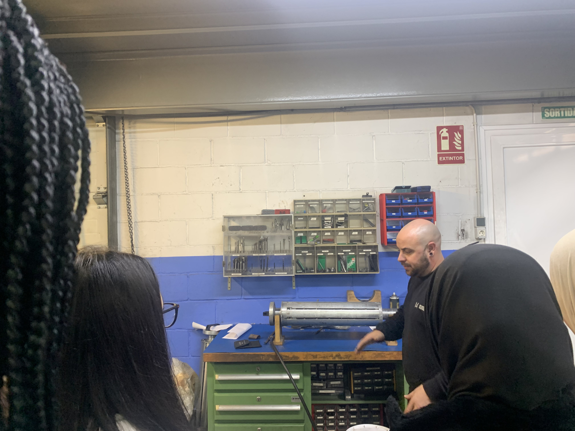 A continuació es va fer un recorregut per les instal·lacions de l'empresa, passant per l'oficina tècnica i per les zones de magatzem i de fabricació de la maquinària, que es personalitza per a cada client. Els alumnes van fer un recorregut per veure les diferents parts del procés de fabricació de les màquines que Mecànica Cape ven a empreses de tot el món.