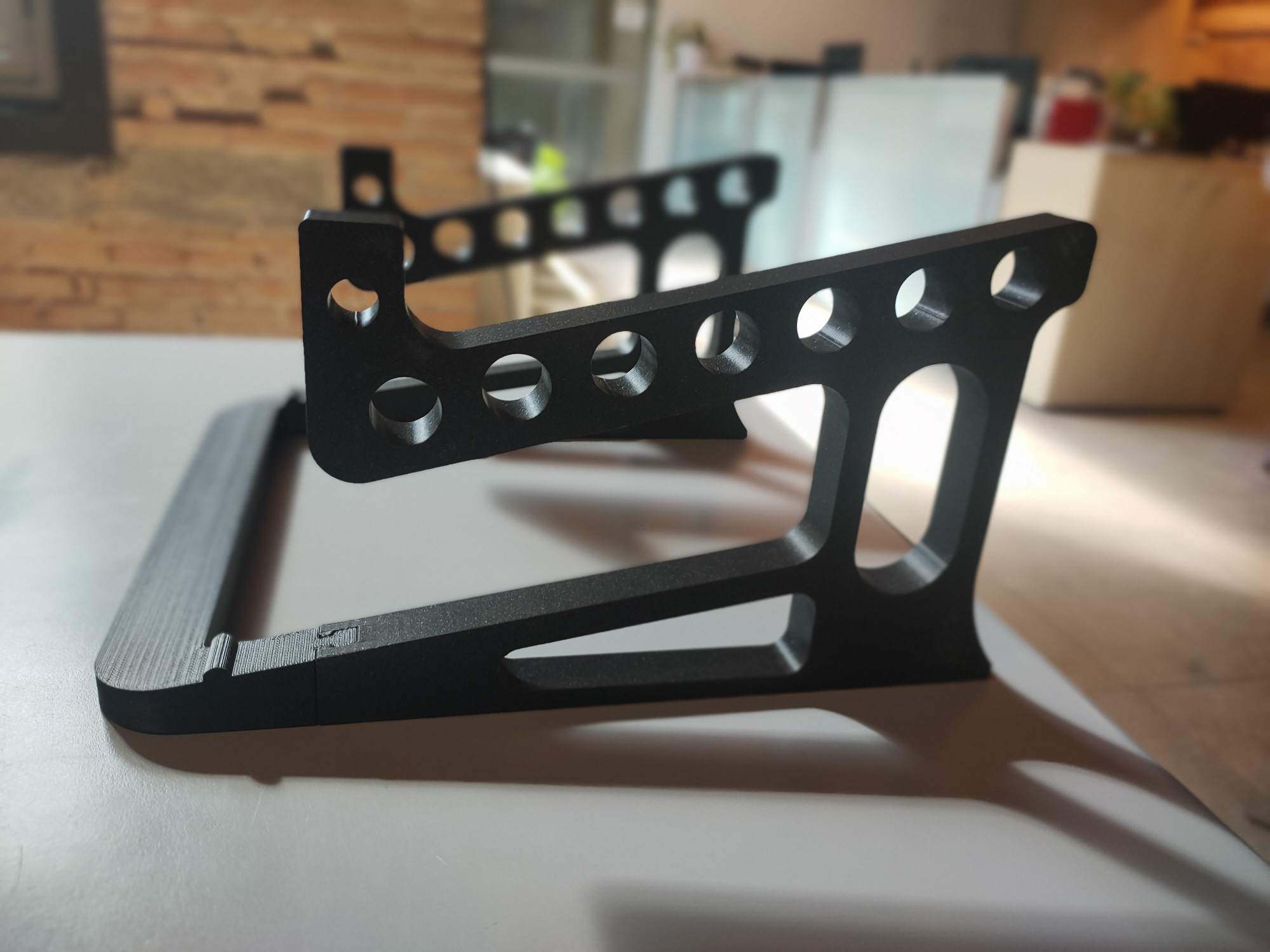 El resultat és aquest suport funcional i ergonòmic, que va ser modelat i fabricat mitjançant impressió 3D pels alumnes de La Salle, combinant creativitat, disseny i tecnologia aplicada.