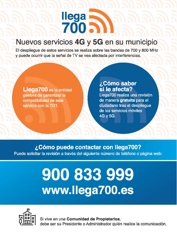 Aquest servei podria afectar la senyal d'alguns canals de televisió durant els propers mesos i s'ofereix un servei de contacte i revisió gratuïta de les afectacions a la televisió.