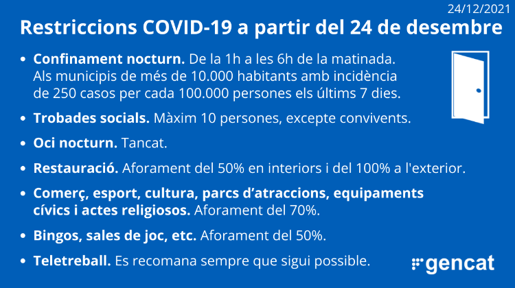 Les mesures tindran una vigència de 14 dies, fins a les 00:00h del 21 de gener de 2022