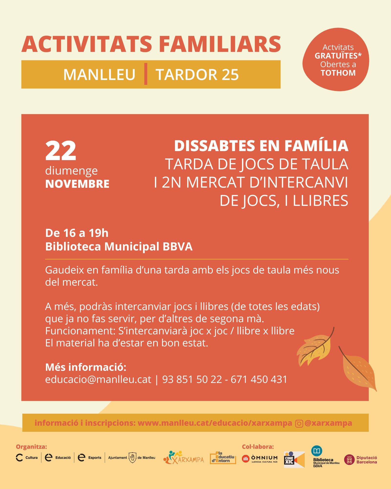 Organitza xerrades i tallers de formació de mares i pares i activitats de trobada i aprenentatge per fer en família.