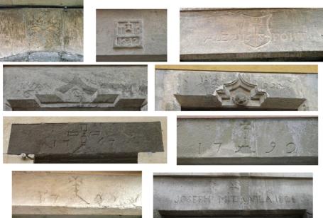 Llindes de les cases de Dalt Vila conservades al barri amb les dates de construcció de la casa que van des del segle XVI fins al segle XIX.