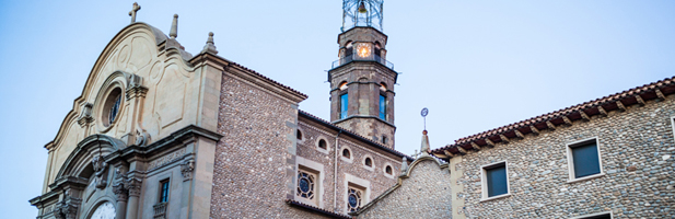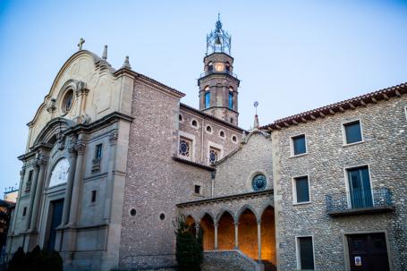 Situada en el punt més enlairat de la vila, a la part central del municipi, al barri conegut com Dalt Vila. La gran alçada del campanar la fa visible des de qualsevol punt.