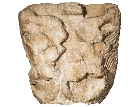 Detall d’un dels capitells del claustre romànic del monestir conservats actualment .