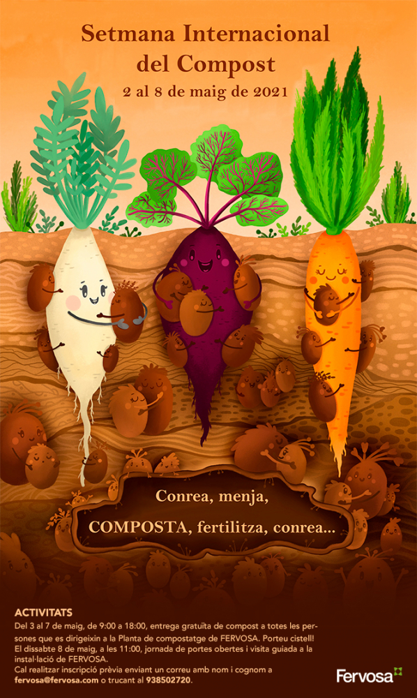 - Del 3 al 7 de maig, de 9:00 a 18:00h, entrega gratuïta de compost a totes les persones que es dirigeixin a la Planta de compostatge de FERVOSA. Porteu cistell!