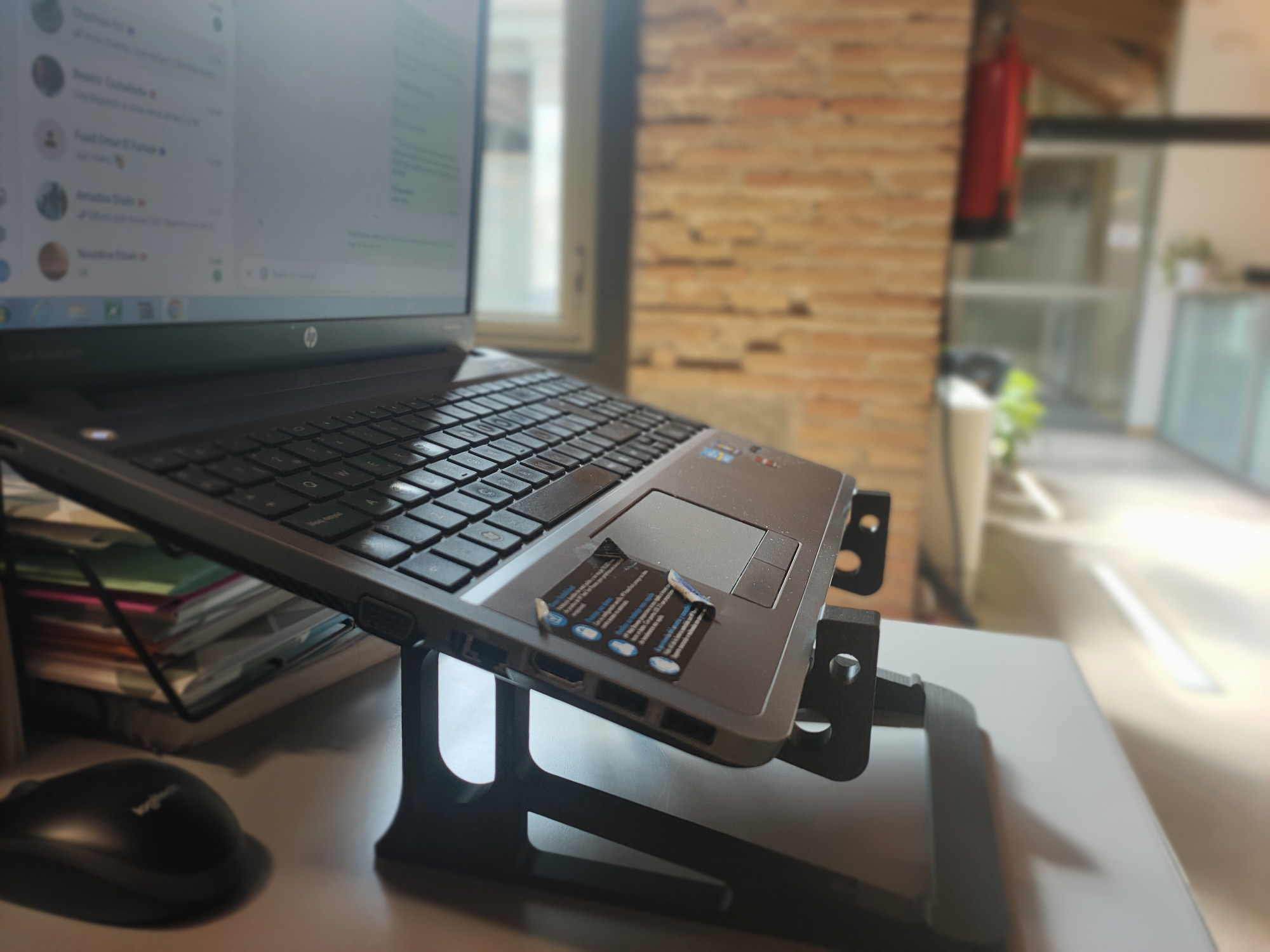 Entre totes les propostes, va destacar especialment la creació d’un suport per a ordinadors portàtils que permetés elevar la pantalla a una alçada més ergonòmica i, alhora, aprofitar l’espai inferior per guardar el teclat addicional que també utilitzaven.