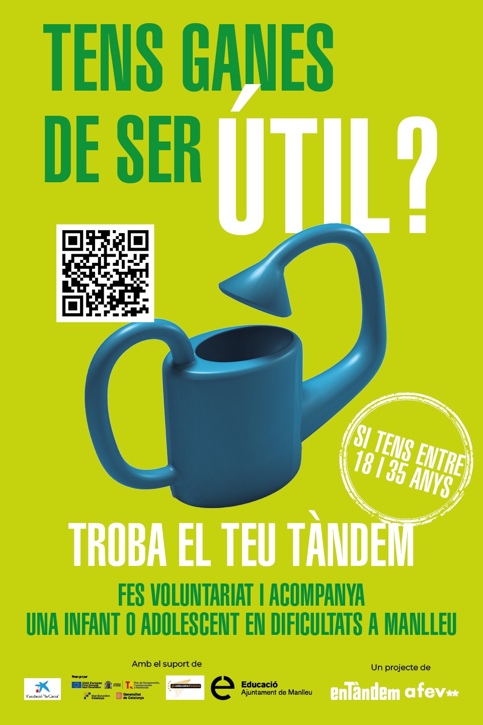 Des del Pla Educatiu d’Entorn de l’Ajuntament de Manlleu s’inicia la segona edició del projecte enTàndem, un projecte de mentoria social i educativa de l’AFEV, una entitat sense ànim de lucre que planteja un moviment d’educació no formal i amb l’objectiu de fer una contribució ciutadana a les polítiques socials de la ciutat. Aquesta mentoria consisteix en què una persona voluntària fa de referent a un/a adolescent en situació de dificultat personal o social. Es treballa per estimular l’autonomia, l’autoestima i la motivació i l’interès per a l’estudi.
